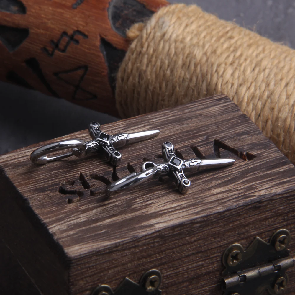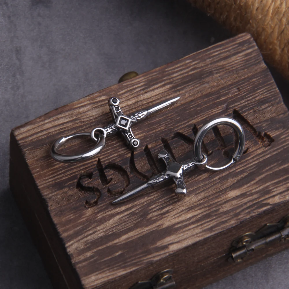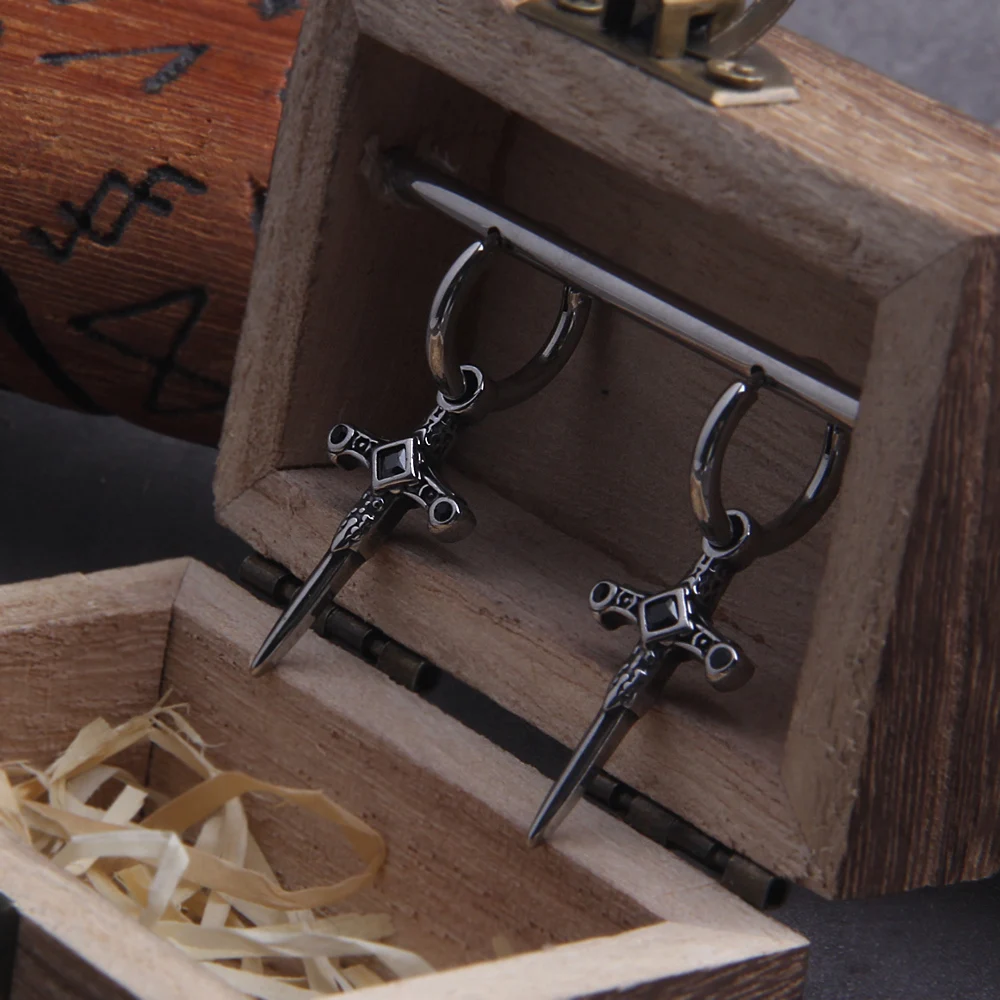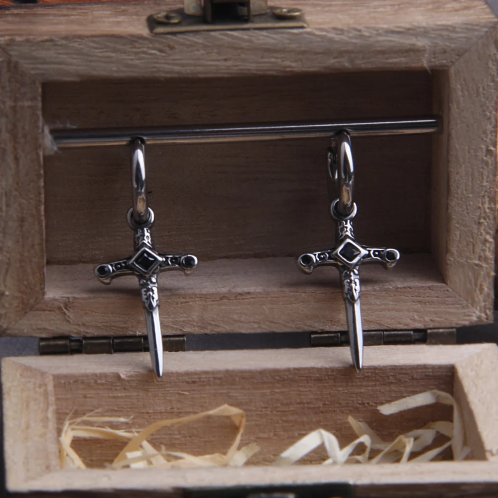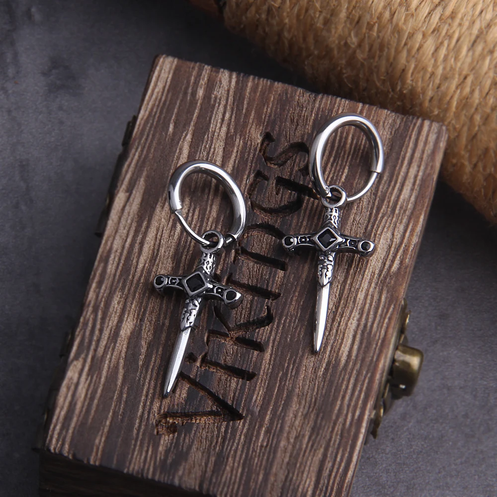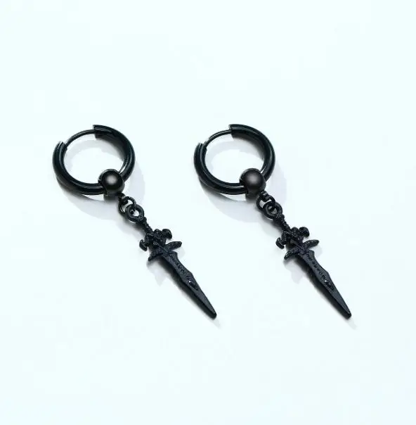 Name: Gothic Kinitial Sword Earrings Vintage Cool Punk Crystal Ear Jacket Goth Dagger Earrings Jewelry Gift For men