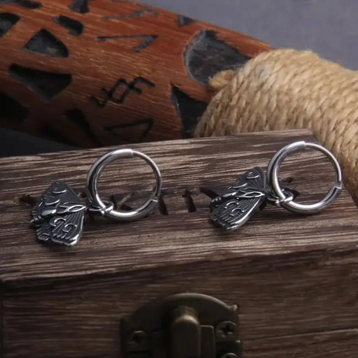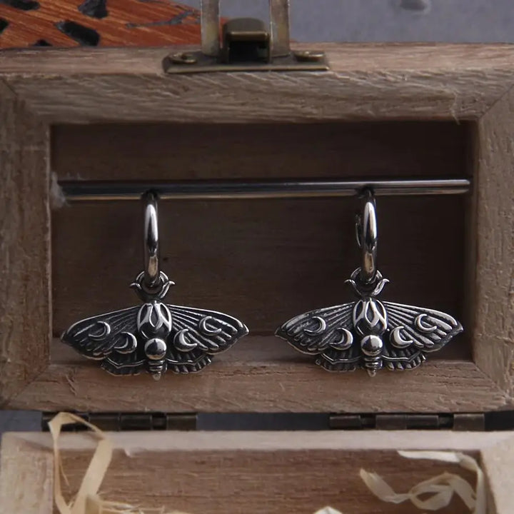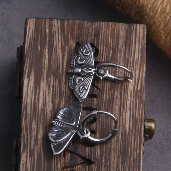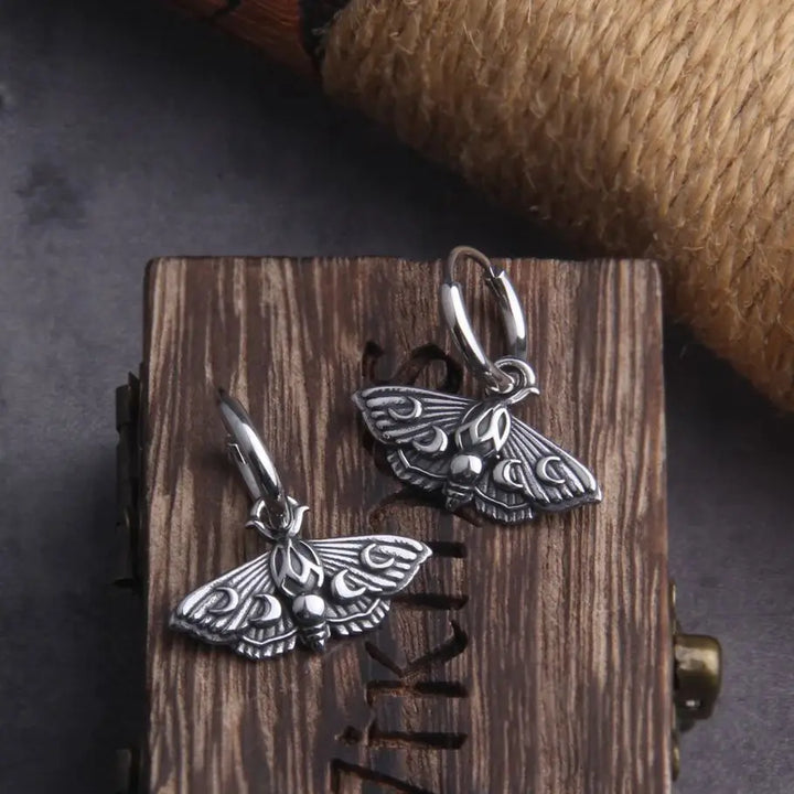 Name:Gothic Vintage Moth Ear Hoops For Women men Fashion Pagan Witch Jewelry Accessories Gift Moon Moth Charm Pendant Earrings New