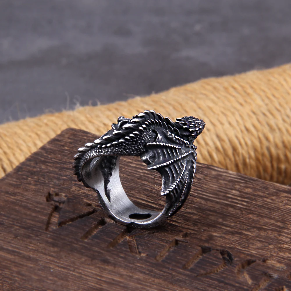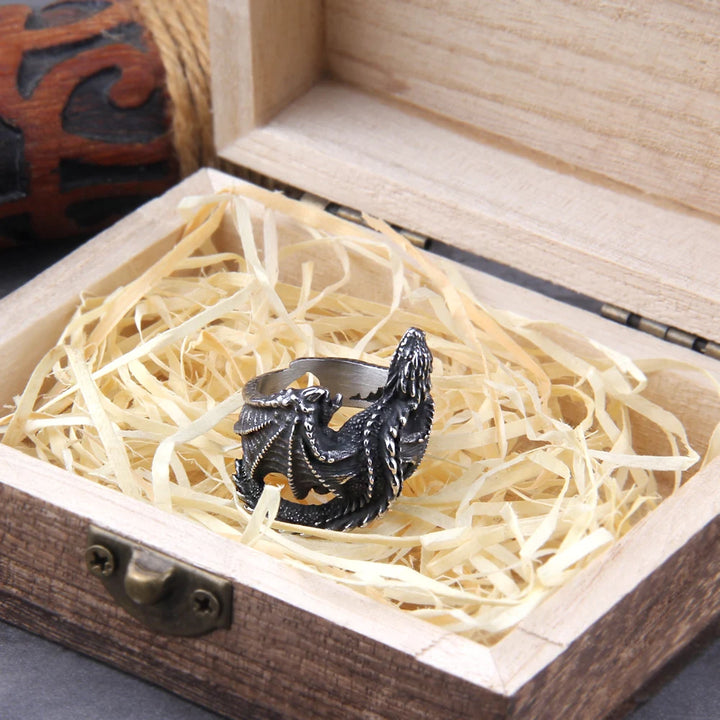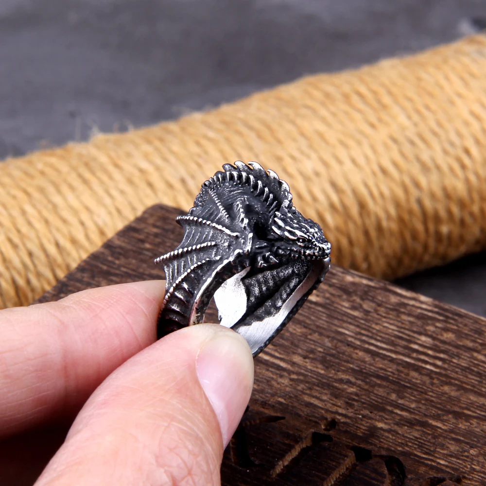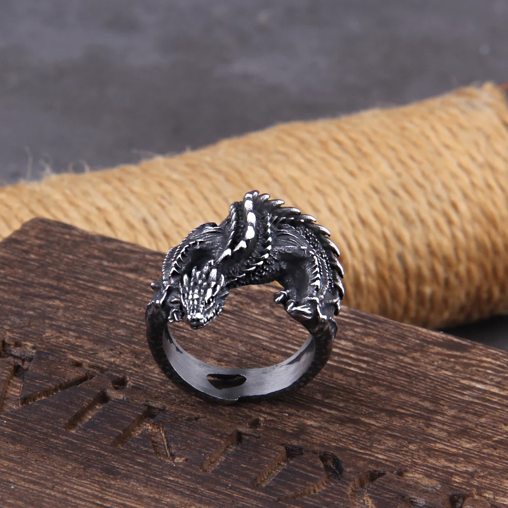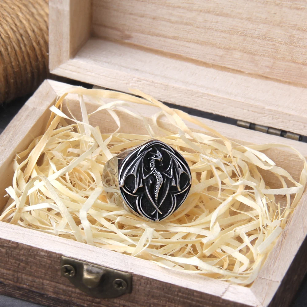 Name:Viking Style Stainless Steel Huge Dragon Ring for Men Male Fashion Jewelry as gift with wooden box Never Fade