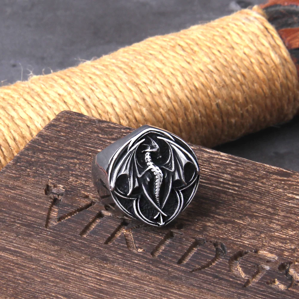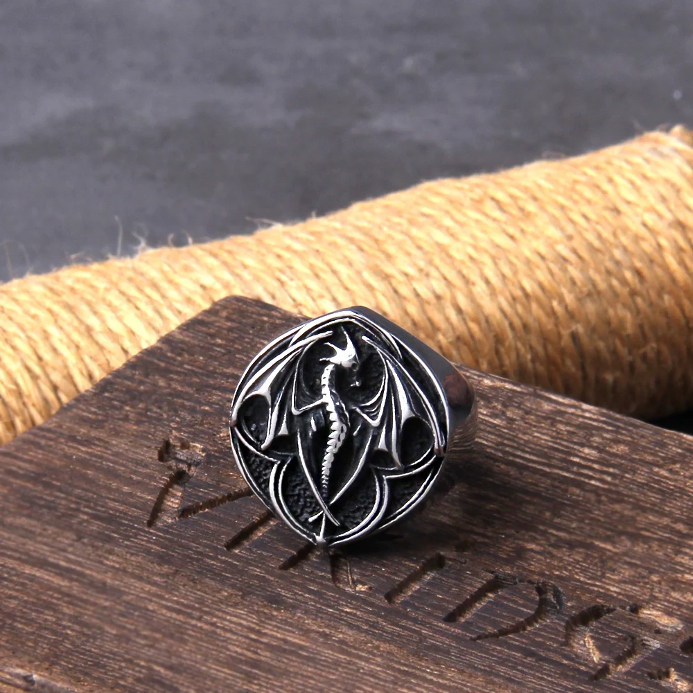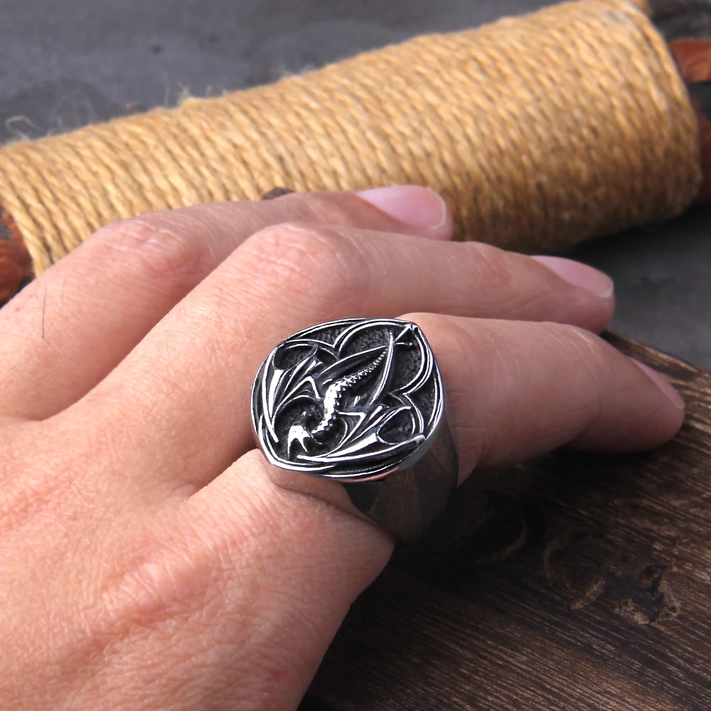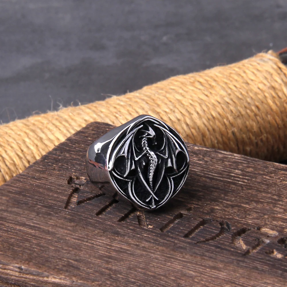 Name:Viking Style Stainless Steel Huge Dragon Ring for Men Male Fashion Jewelry as gift with wooden box Never Fade